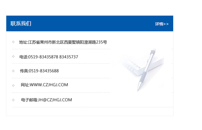 傳真:0519-83435688    郵編:213135    網址:WWW.czjhgj_com.cqzkzs.com    電子郵箱:JH@czjhgj_com.cqzkzs.com